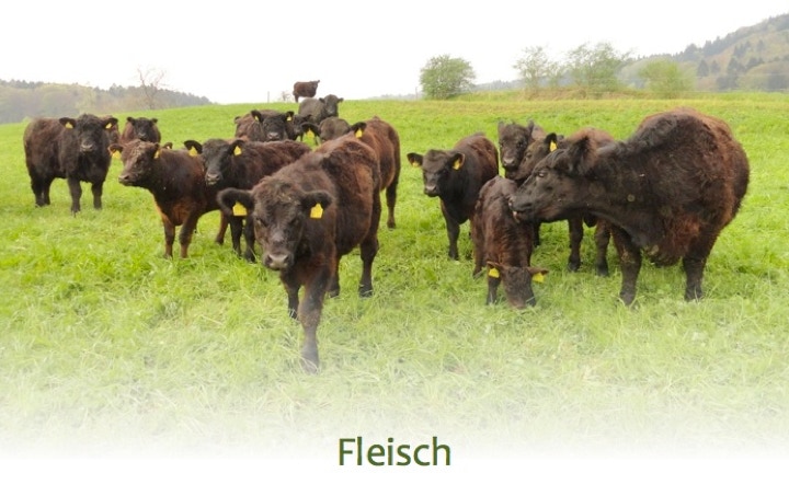 Unsere Galloway-Kühe und -Kälber halten wir nach den Natura-Beef-Richtlinien von Mutterkuh Schweiz.